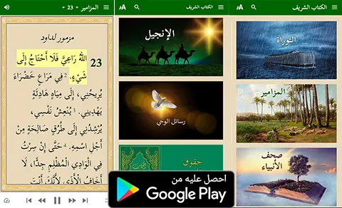 The Kitab Sharif is a translation of what God Almighty revealed in the Torah of Moses, the Psalms of David, the Writings of the Prophets, and the Gospel of our Lord Jesus Christ. And since this is the Word of God, in which there can be no alteration or change, we in this translation committed ourselves to the utmost accuracy in matching the meaning of the original text in order to convey it correctly to the Arabic reader in language that is clear, smooth, and easy. This app includes synchronized audio playback for the Book of Psalms, the Good News by Luke, the Good News by John, and the Book of Acts of the Apostles. God willing, there will be synchronized audio files for other books in future updates.